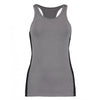 Ideal for team sports or training purposes, the Gamegear Women's Grey Melange/Black Racer Back Vest is both stylish and comfortable. Allowing you to add your very own custom logo for team recognition and personalisation, this versatile vest features a flattering curved hem and micromesh contoured side panels. Not only does this provide a slimmer fit, but also gives this vest greater visibility - perfect for team sports. Flattering and sleeveless to allow for maximum movement, this customisable Gamegear vest will suit a variety of body types.