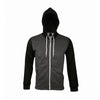 Stand out from the others with the contrasting and stylish SOL'S Unisex Charcoal Marl Silver Hooded Jacket with custom logo. This premium quality hoodie is made from a blend of cotton and polyester which can be logoed, and it's offered in a drop shoulder style. It's exceptionally comfortable thanks to brushed fleece backing and lined hood with white drawcord. The contrast full length zip with white trim breaks up the monotony of a standard hoodie, whilst front pouch pockets and ribbed cuffs and hem round out the details and add utility value. Offered in a choice of contrast and solid colours, this promo hoodie is perfect for student giveaways, promo merch and brand awareness campaigns.