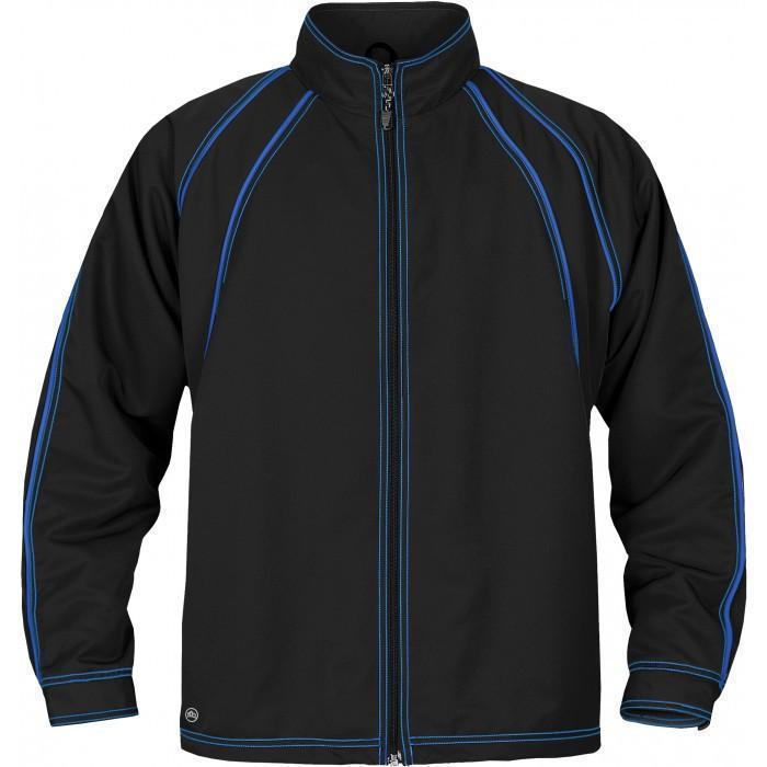 Sporty style meets true function in the Stormtech Women's Black/Black/Royal Blaze Athletic Jacket. Attention to detail, a water-repellant outer shell, and high contrast piping not only make this an eye-catching piece of outerwear, but also durable apparel that can be worn even when the weather isn't ideal. Add your embroidered logo and wear it as part of team warm-up gear.