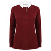The Front Row Women's Deep Burgundy/White Classic Rugby Shirt gives the women on your team a sporty and stylish way to represent your brand. This long sleeve features a classic look that is big on style, which ensures that your custom logo or design always looks its best when placed upon this item. The semi-fitted style is extremely figure flattering and comes in a variety of fashionable color options, ensuring that every member of your team looks and feels their best. Pair that with this shirt's exceptional details, which include elastane ribbed cuffs and taped side vents, and you have the item your brand has been searching for.