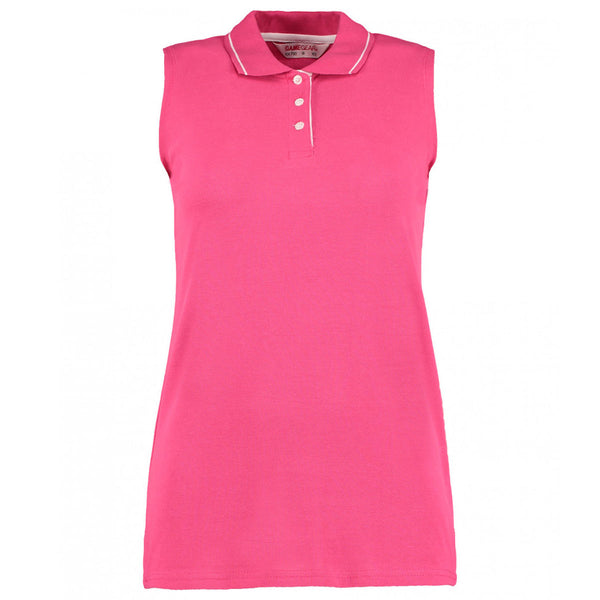 Gamegear Women's Raspberry/White Proactive Sleeveless Cotton Pique Polo Shirt