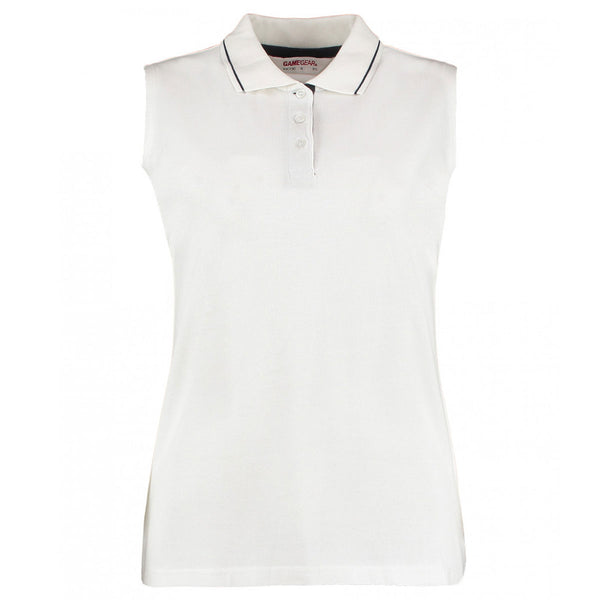 Gamegear Women's White/Navy Proactive Sleeveless Cotton Pique Polo Shirt