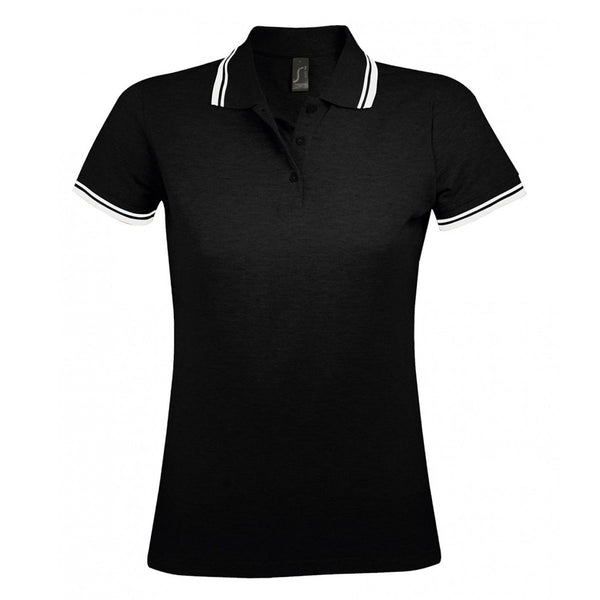 SOL'S Women's Black/White Pasadena Tipped Cotton Pique Polo Shirt