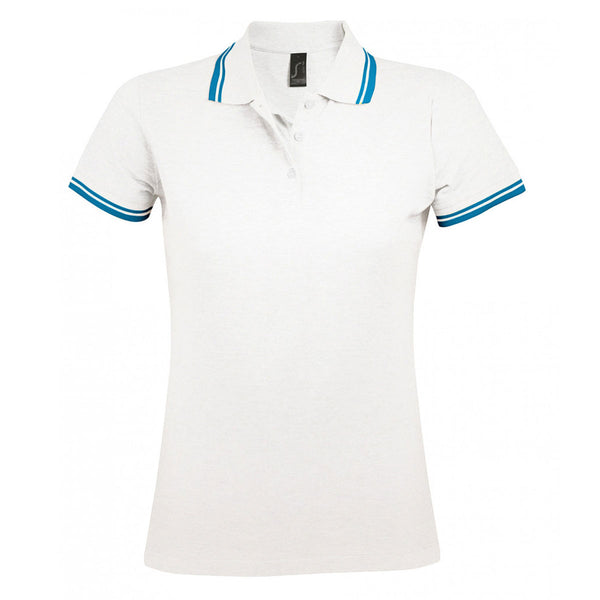 SOL'S Women's White/Aqua Blue Pasadena Tipped Cotton Pique Polo Shirt