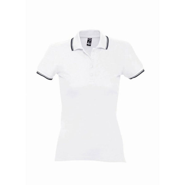 SOL'S Women's White/Navy Practice Tipped Cotton Pique Polo Shirt