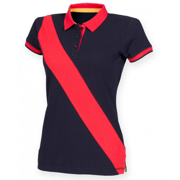 Front Row Women's Navy/Red Diagonal Stripe Cotton Pique Polo Shirt
