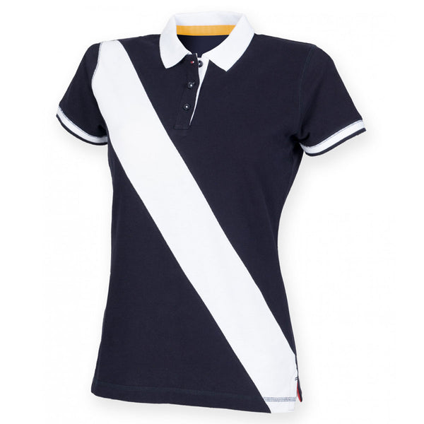 Front Row Women's Navy/White Diagonal Stripe Cotton Pique Polo Shirt