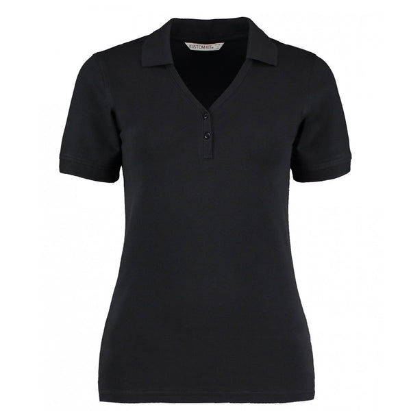 Kustom Kit Women's Black Sophia Comfortec V Neck Polo Shirt
