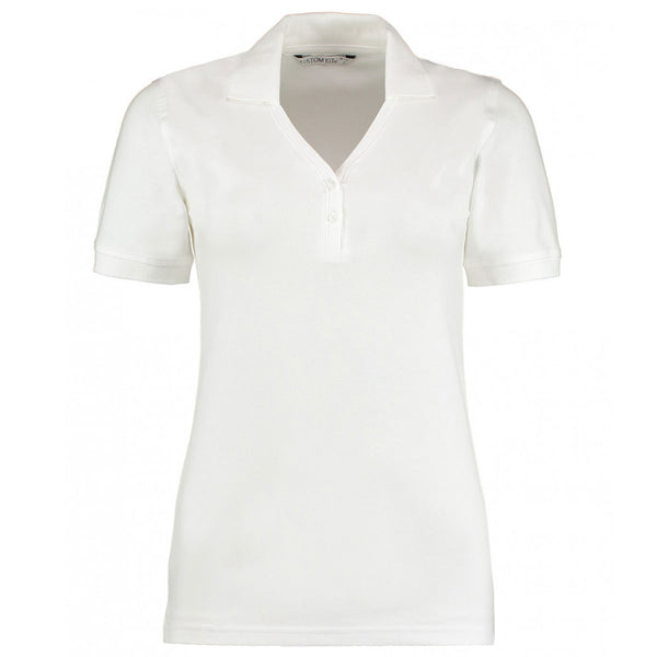 Kustom Kit Women's White Sophia Comfortec V Neck Polo Shirt