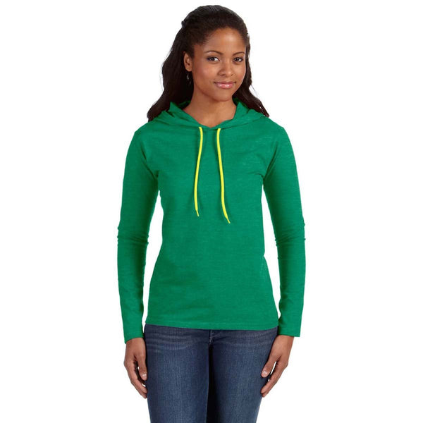 Anvil Women's Heather Green/Neon Yellow Long-Sleeve Hooded T-Shirt
