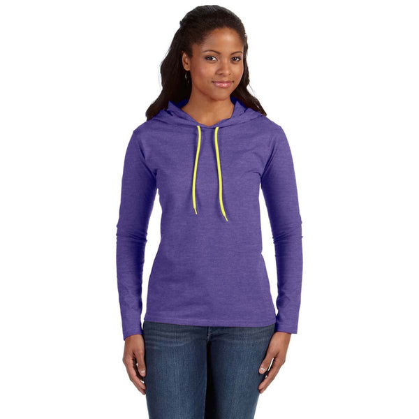 Anvil Women's Heather Purple/Neon Yellow Long-Sleeve Hooded T-Shirt