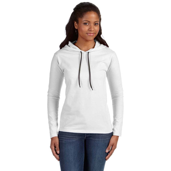 Anvil Women's White/Dark Grey Long-Sleeve Hooded T-Shirt