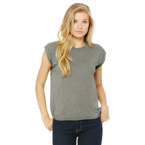 Bella + Canvas Women's Heather Stone Flowy T-Shirt with Rolled Cuff