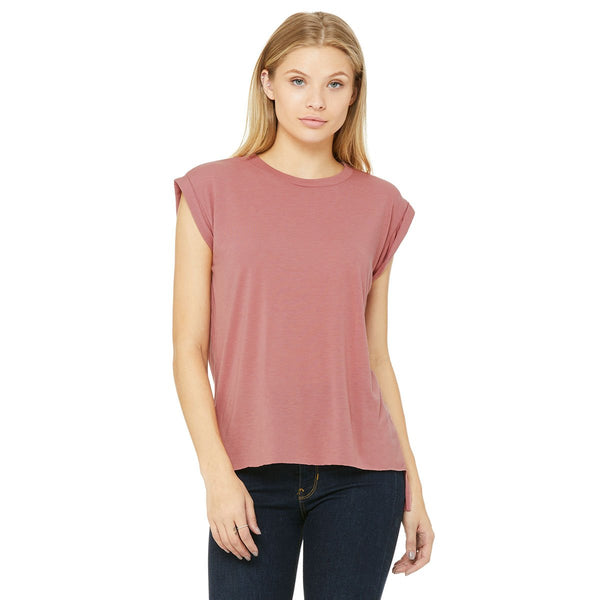 Bella + Canvas Women's Mauve Flowy T-Shirt with Rolled Cuff