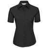 Offering a relaxed alternative to a long sleeve shirt yet looking no less professional, the Russell Collection Women's Black Short Sleeve Easy Care Cotton Poplin Shirt is certain to suit the majority of professional workplaces. Giving you the power to add your very own custom logo with ample free space available, this easy care shirt features a left chest pocket, classic collar and flattering curved hem. Specifically designed to feel comfortable and look sharp at all times, this Russell Collection shirt is ideal for customer-facing environments.
