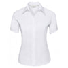 Offering a more casual alternative to a traditional long sleeve shirt, the Russell Collection Women's White Short Sleeve Ultimate Non-Iron Shirt is both comfortable and professional - ideal for a multitude of corporate working environments. Featuring a semi-tailored fit, long edge collar and stylish twin button fastening, this non-iron shirt requires minimal maintenance at home to retain its sleek appearance whilst at work. Also providing the opportunity to add your very own custom logo with ease, plenty of free shirt space is available to create instant personalisation for your company.