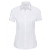 Classic in design and guaranteed to make your custom logo stand out from the crowd, the Russell Collection Women's White Short Sleeve Herringbone Shirt is certain to impress. Specifically designed to feel comfortable and look sharp, this stylish shirt features a traditional fitted style, neat modern collar, and bust, back and front darts to create a flattering shape for the wearer. Also offering plenty of space available for you to add your very own custom logo for instant company personalisation, this bespoke shirt is hugely versatile.