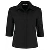 Flattering in both style and shape, the Kustom Kit Women's Black 3/4 Sleeve Tailored Continental Shirt is ideal for corporate environments. Tailored yet boasting a comfortable, lightweight feel for the wearer, you have the opportunity to add your very own custom company logo for creating a stylish workplace uniform. Offering a fitted style with a stand-up collar, concealed placket and trendy pearlescent buttons, this customisable feminine shirt has also been crafted using easy-iron fabric to ensure a smooth appearance with every wash.