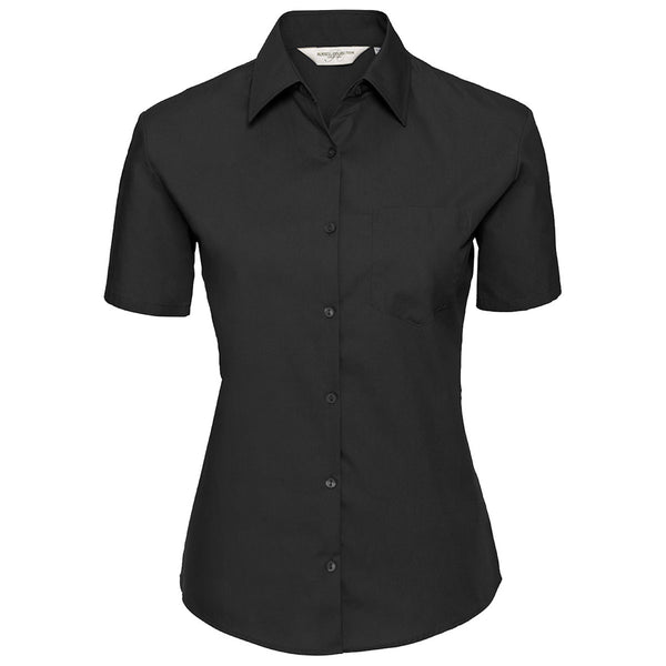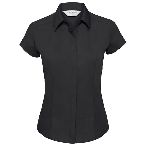 Russell Collection Women's Black Cap Sleeve Fitted Poplin Shirt