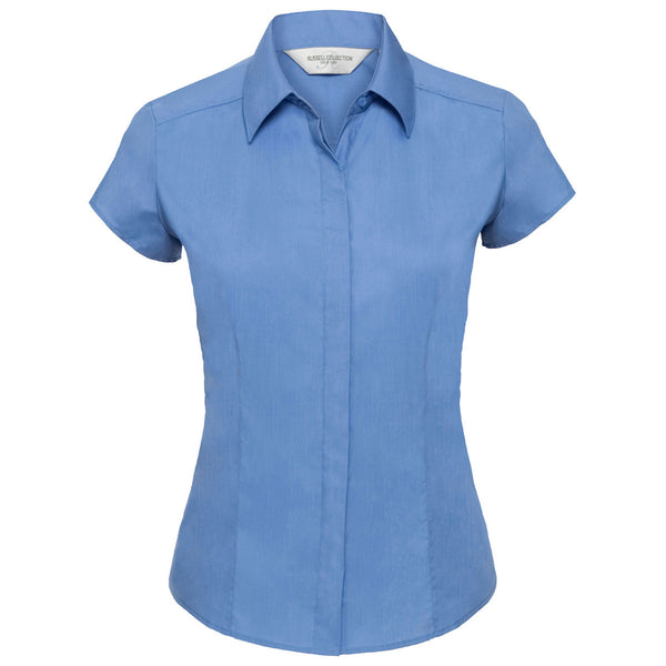 Russell Collection Women's Corporate Blue Cap Sleeve Fitted Poplin Shirt