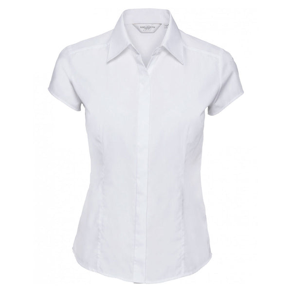 Russell Collection Women's White Cap Sleeve Fitted Poplin Shirt