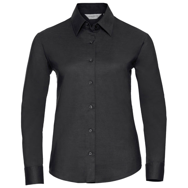 Russell Collection Women's Black Long Sleeve Easy Care Oxford Shirt