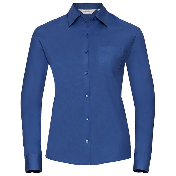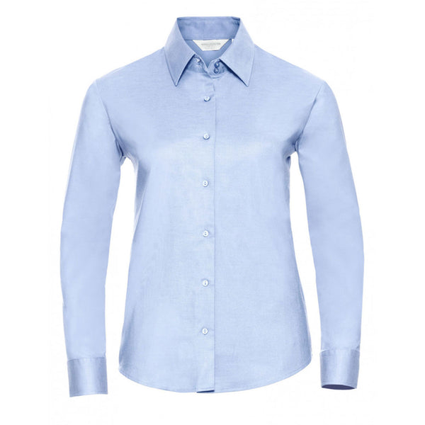 Russell Collection Women's Oxford Blue Long Sleeve Easy Care Oxford Shirt