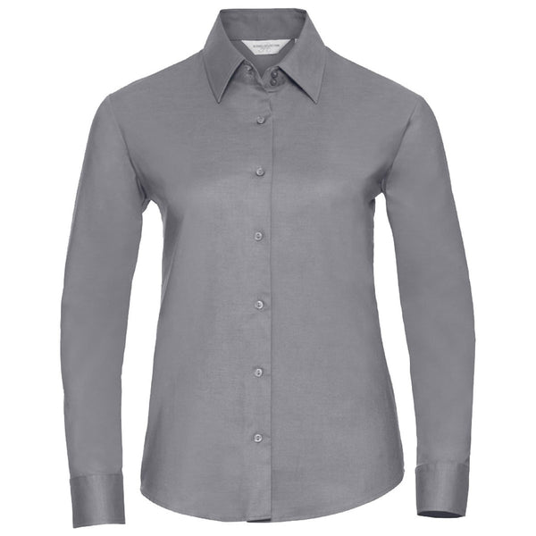Russell Collection Women's Silver Long Sleeve Easy Care Oxford Shirt