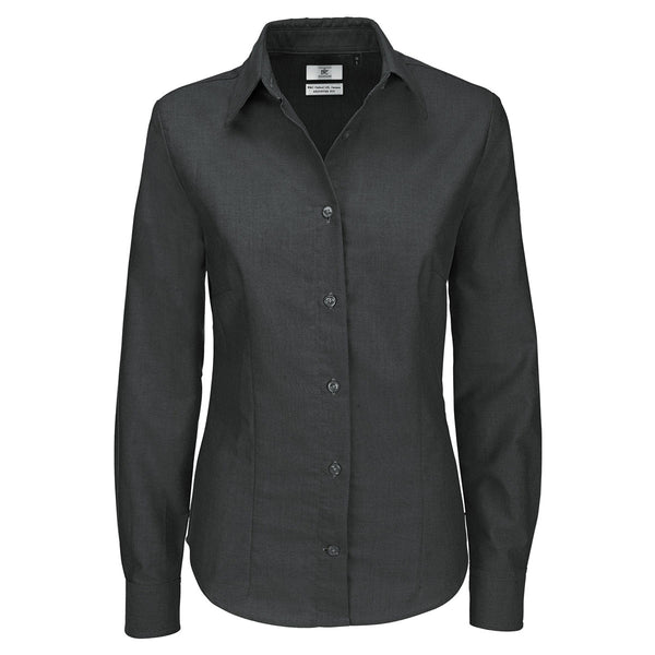B&C Women's Black Oxford Long Sleeve Dress Shirt