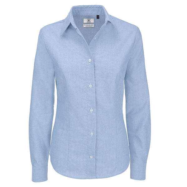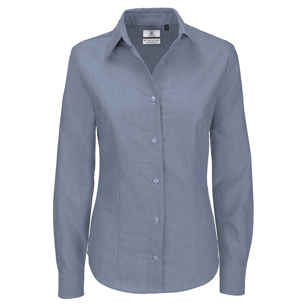 B&C Women's Oxford Blue Oxford Long Sleeve Dress Shirt