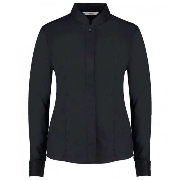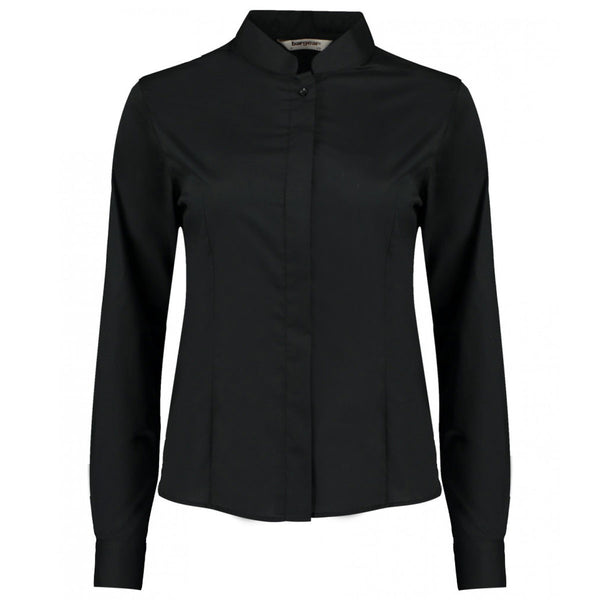 Kustom Kit Women's Black Long Sleeve Tailored Mandarin Collar Shirt