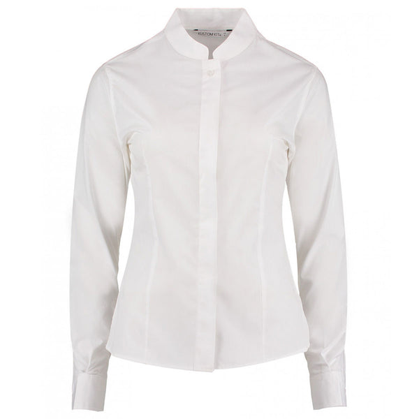 Kustom Kit Women's White Long Sleeve Tailored Mandarin Collar Shirt