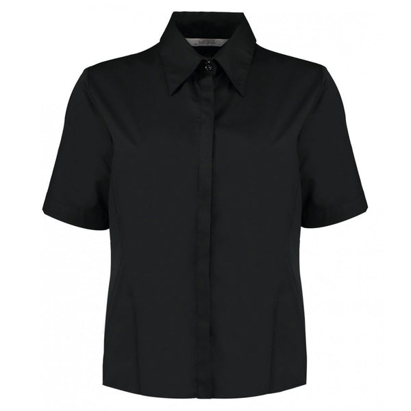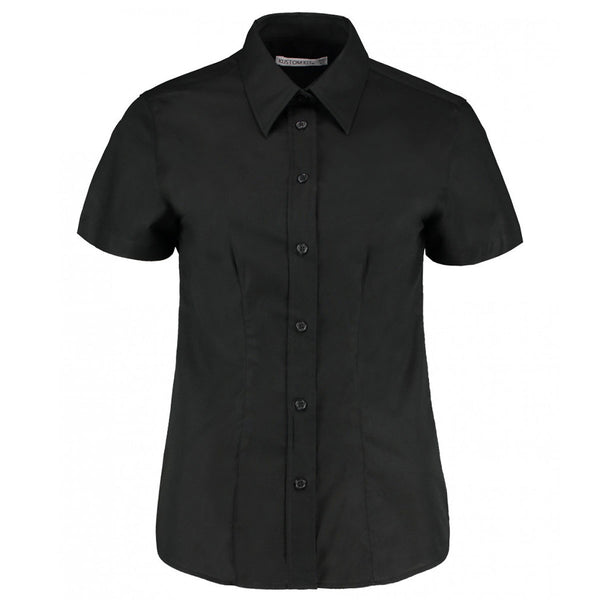 Kustom Kit Women's Black Short Sleeve Tailored Workwear Oxford Shirt