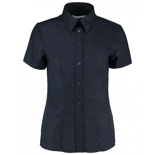 Kustom Kit Women's French Navy Short Sleeve Tailored Workwear Oxford Shirt