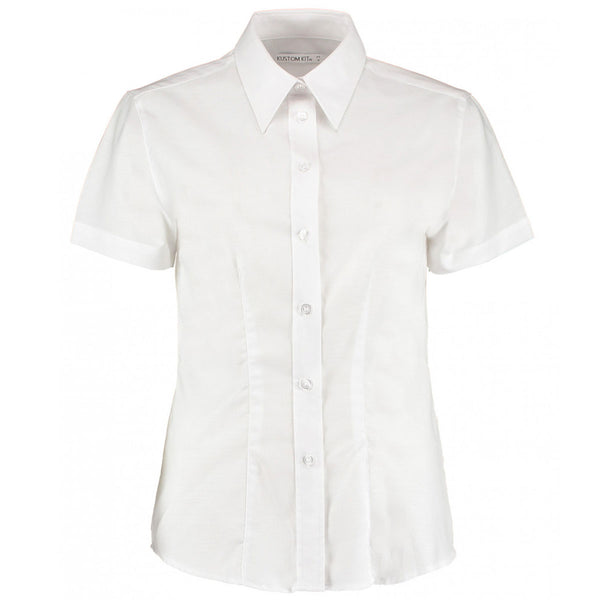 Kustom Kit Women's White Short Sleeve Tailored Workwear Oxford Shirt