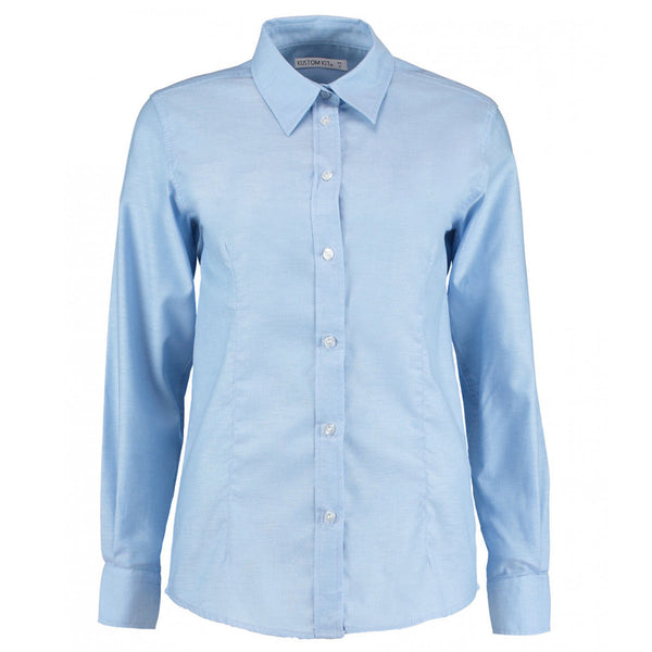 Kustom Kit Women's Light Blue Long Sleeve Tailored Workwear Oxford Shirt