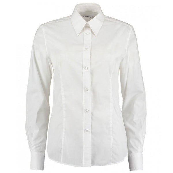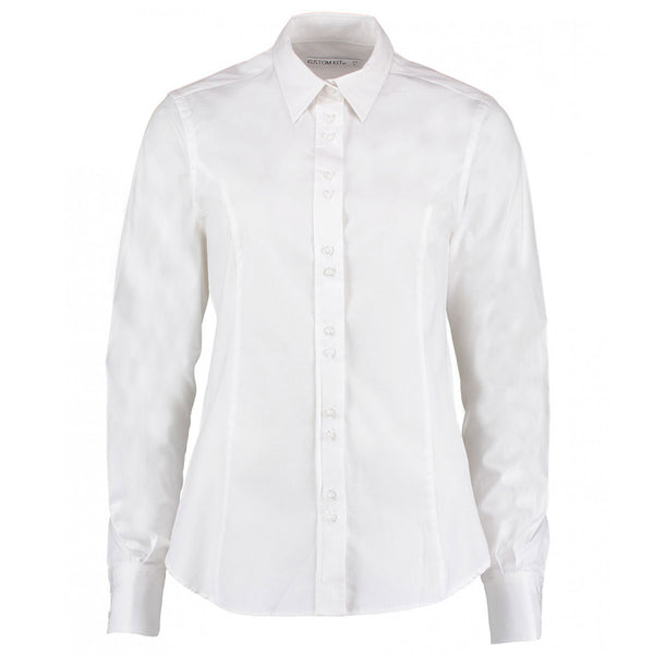 Kustom Kit Women's White Long Sleeve Tailored Business Shirt