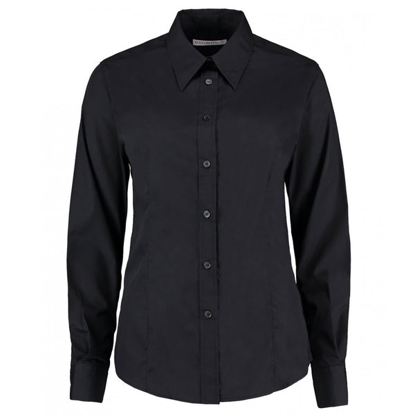Kustom Kit Women's Black Long Sleeve Tailored Business Shirt