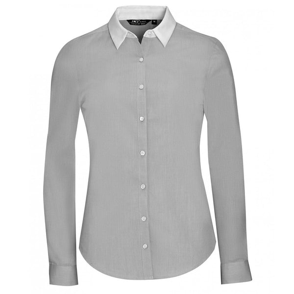 SOL'S Women's Pearl Grey Belmont Long Sleeve Contrast Poplin Shirt