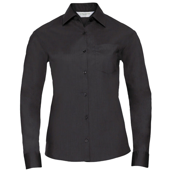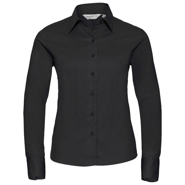 Russell Collection Women's Black Long Sleeve Easy Care Poplin Shirt