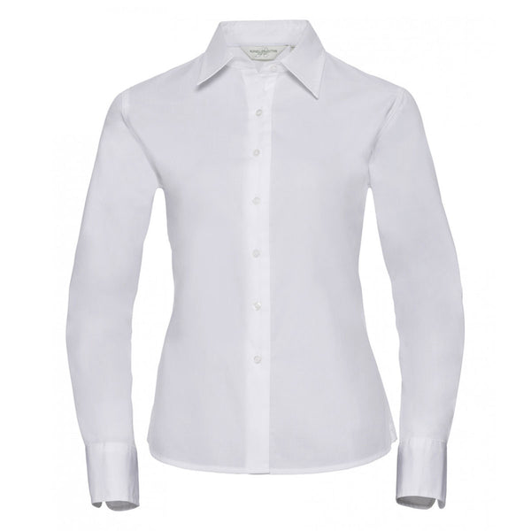 Russell Collection Women's White Long Sleeve Classic Twill Shirt