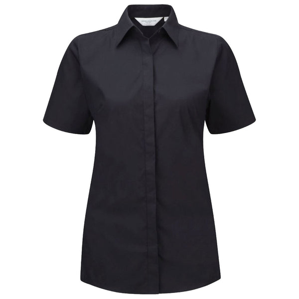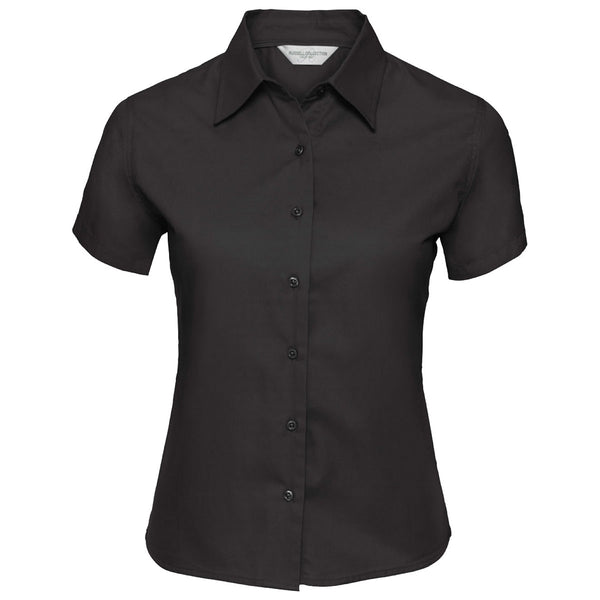 Russell Collection Women's Black Short Sleeve Classic Twill Shirt