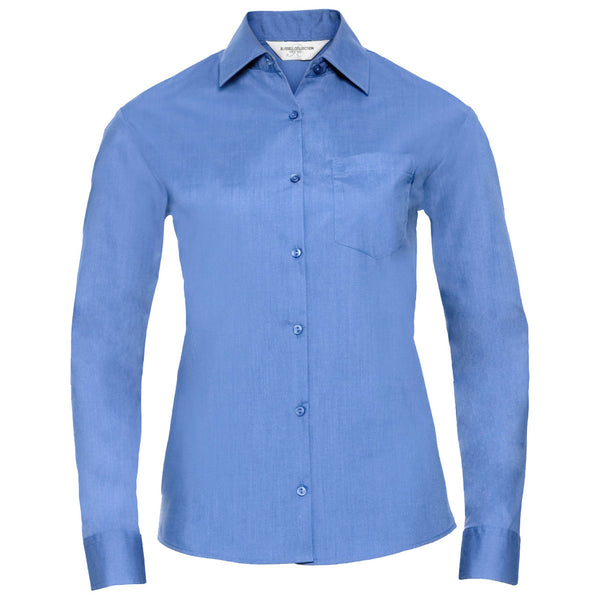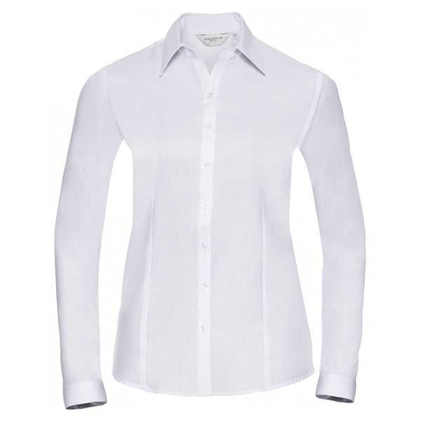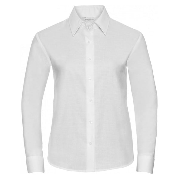 Russell Collection Women's White Long Sleeve Easy Care Oxford Shirt