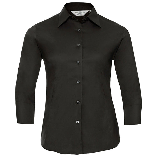 Russell Collection Women's Black 3/4 Sleeve Easy Care Fitted Shirt