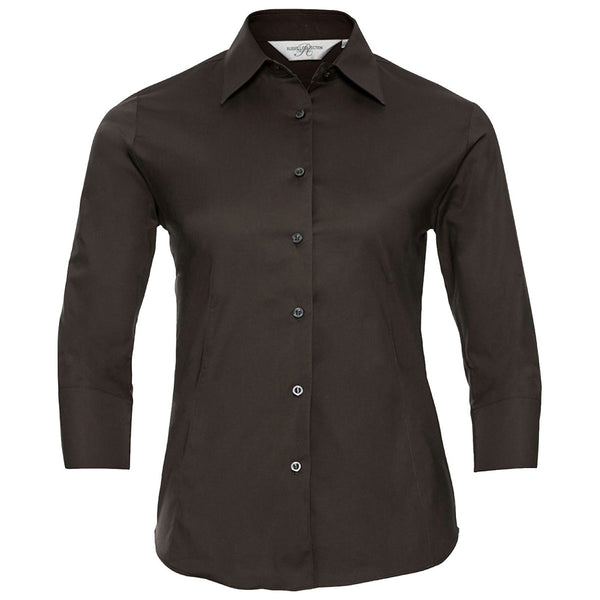 Russell Collection Women's Chocolate 3/4 Sleeve Easy Care Fitted Shirt