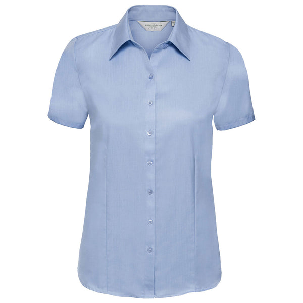 Russell Collection Women's Light Blue Short Sleeve Herringbone Shirt