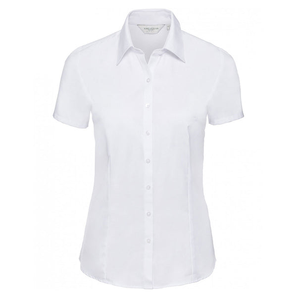 Russell Collection Women's White Short Sleeve Herringbone Shirt