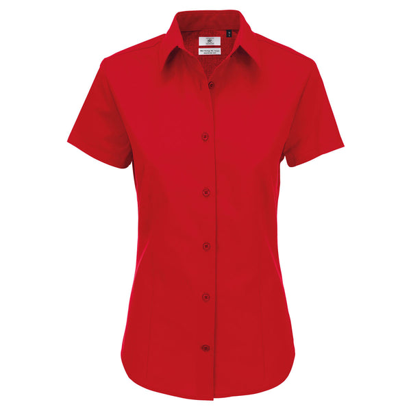 B&C Women's Deep Red Heritage Short Sleeve Dress Shirt