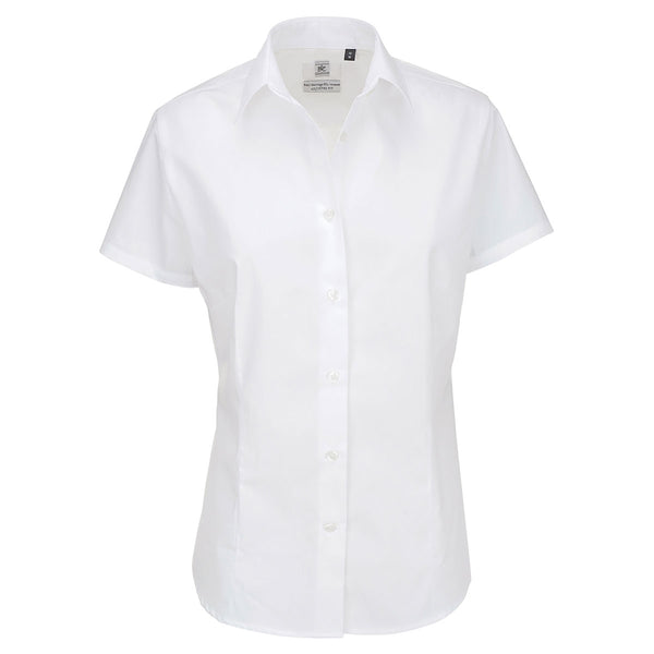 B&C Women's White Heritage Short Sleeve Dress Shirt