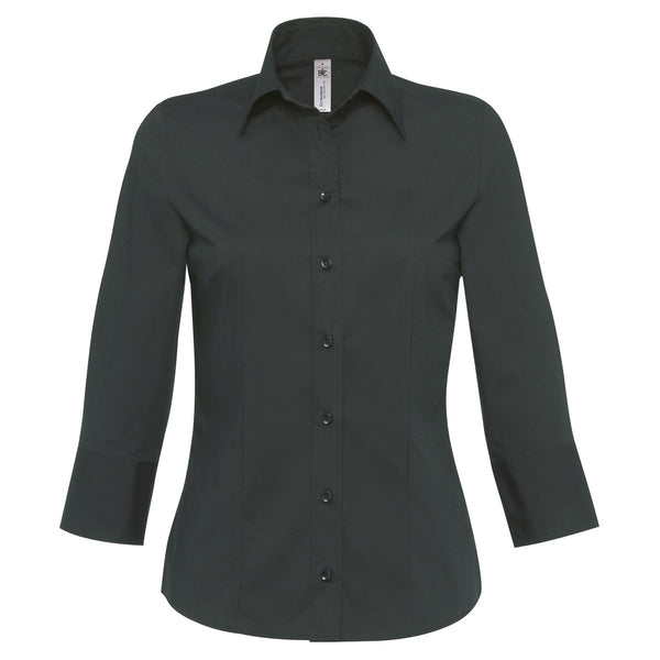 B&C Women's Black Milano 3/4 Sleeved Poplin Shirt
